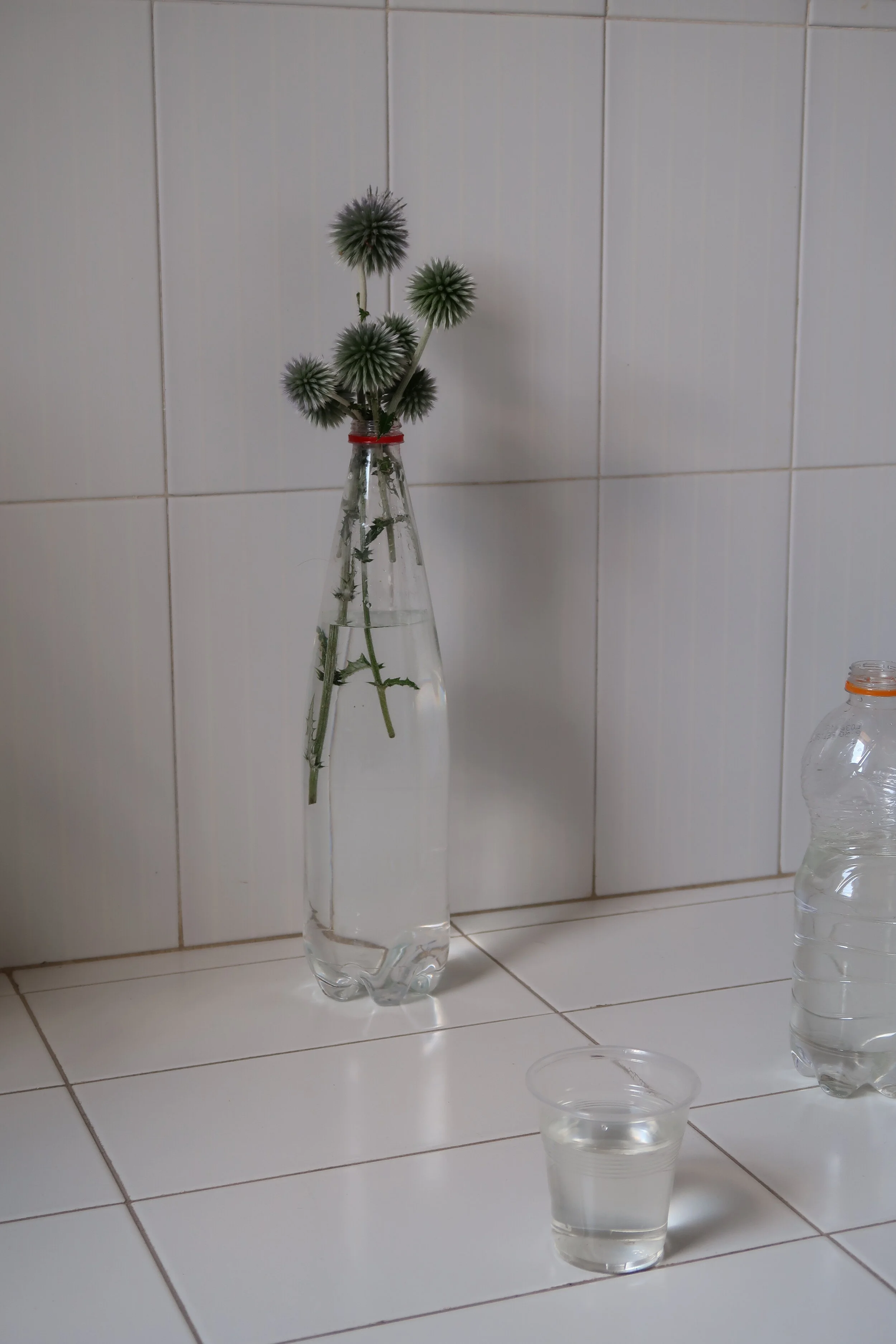 Paired with discarded things gathered around the house, mostly from the kitchen, made into vases.