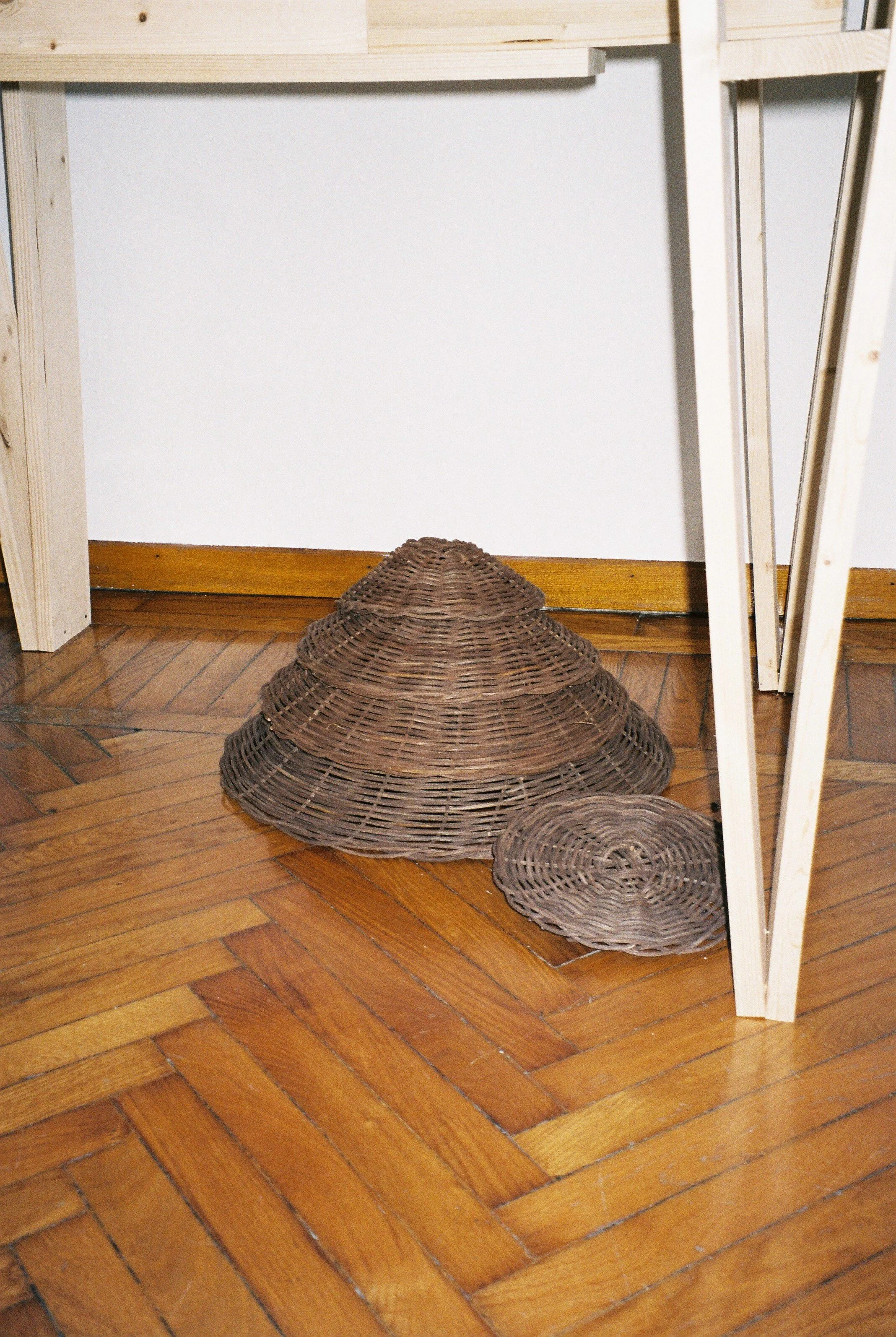 I’ve made lampshades using wicker, coming from the Philippines, in both dark and light colors to fit the theme of light and dark which divided their now two display windows, together with Riccardo Monte’s serving/cutting boards.