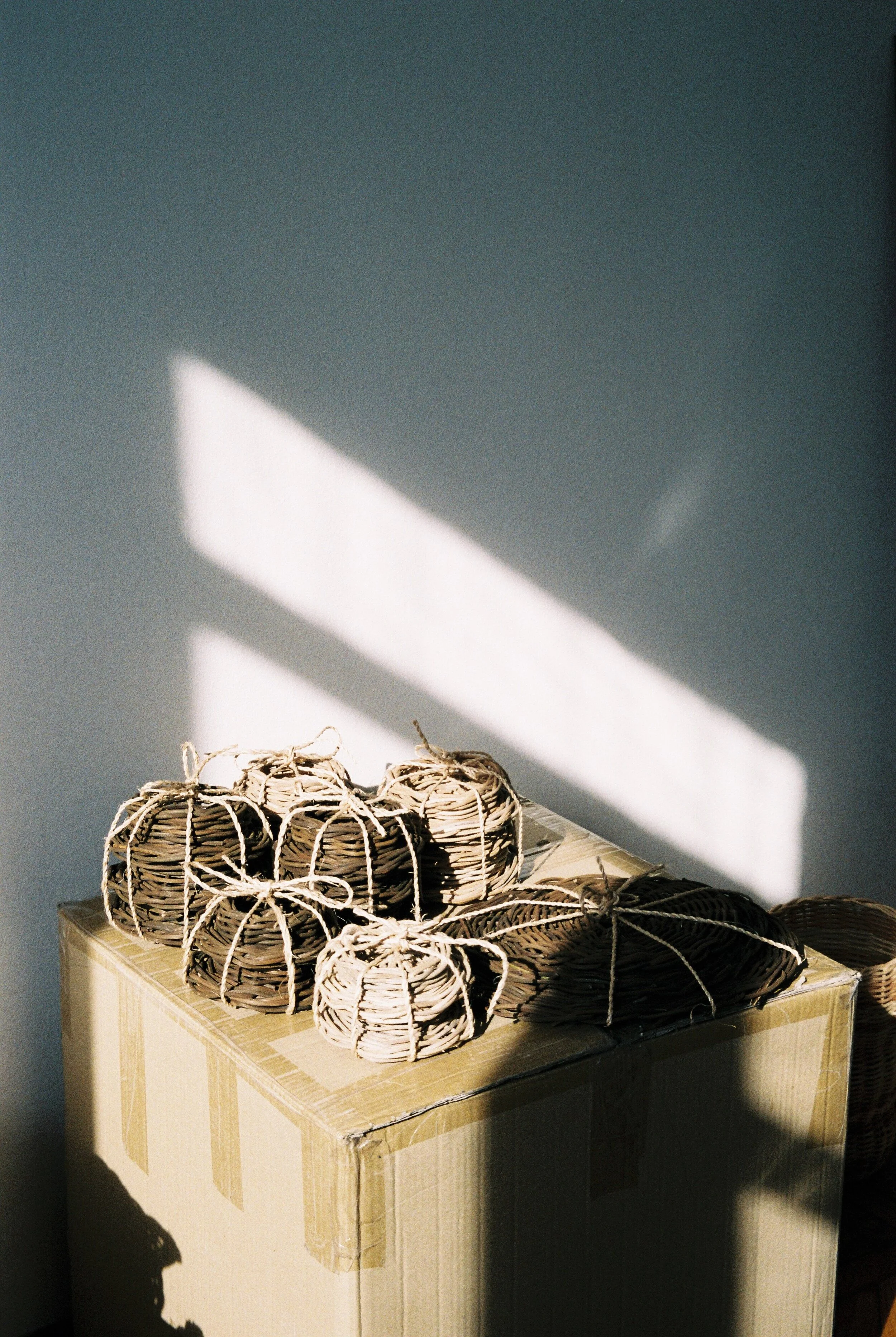 The trays were woven spontaneously, instead of creating a round shape, I played with the movement of form and went back and forth with the looping of the strands.