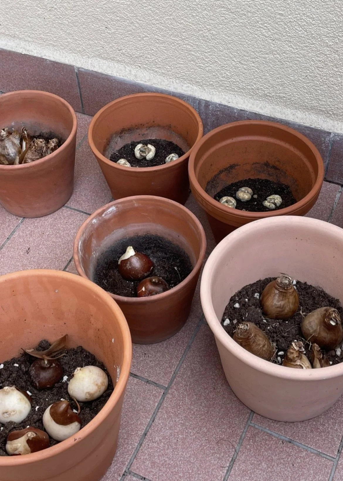 Most of these photos were taken in 2022, the year I gave birth to my daughter. It was a challenging year and I stayed most of the time inside the house, where I have explored gardening even more. We have a balcony in our apartment in Milan, which is until now a work in progress, it stretches from our living room to my studio, a narrow space facing West with full sun in the afternoon.